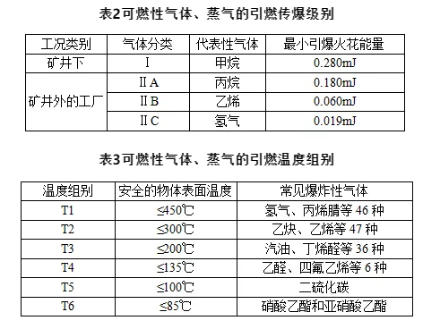 2、根据可能出现的可燃性气体、蒸气的传爆级别和引燃温度组别,选择仪表的防爆等级和最高允许表面温度组别。